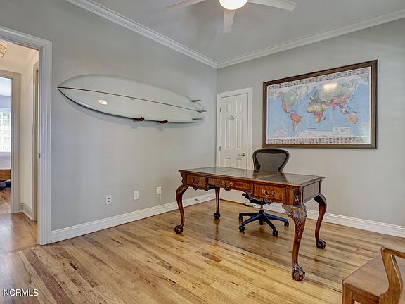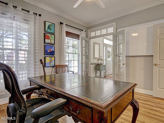 You'll fall in love with this gorgeous low country southern beauty in the heart of Wilmington! This over 3,000 square foot home is located in desirable Kensington Place within minutes to Wrightsville Beach and Mayfaire! Enjoy relaxing on your wraparound front porch and gaze out at the magnificent live oak trees and Spanish moss! This home has 5 bedrooms, which includes a large spacious bonus room with a full bath perfect for guests. There is also a detached ~300 square foot studio/office with matching front porch ideal for a game room or private home office. Kitchen has been recently updated with beautiful quartz counters, subway tile backsplash, and stainless steel appliances that convey. This home has all hardwoods throughout the living areas and bedrooms. Master suite is on the first floor with walk in closet, double vanities, and claw foot tub. Abundant natural light is a key feature of this home with two story floor-to-ceiling windows in the living room and two story foyer. The exterior has been freshly painted and upgraded 3 ton Trane 2 stage HVAC was installed within the last 2 yrs. Property is on a large corner lot with fenced yard and fenced in extra parking for your boat or trailer. There is a termite bond as well for peace of mind. This home shows well with new fixtures and has so much to offer! Don't miss out on this amazing opportunity to own a stunning home in a fantastic location!