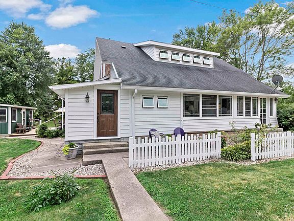 Historic Charm Meets Modern Comfort in this Unique 1885 Schoolhouse! Step back in time with this beautifully preserved historic schoolhouse on 0.4 acres outside of Eaton. Originally built in 1885, the school has been transformed into a rare blend of vintage charm and modern amenities, making it a unique find in today's market. This home features 4 spacious bedrooms, each with its own walk-in closet, and 2.5 baths. The main house has 3 bedrooms and 1.5 baths, and the fully functional efficiency apartment (located within the detached garage) is perfect for guests or as a rental opportunity. All appliances stay, including a deep freezer, ensuring you have everything you need to settle in comfortably from day one. In the winter you can stay warm with central heat AND/OR the included wood stove (and a year's worth of wood that stays on the property!). Outdoor Features: Enjoy the tranquility of the property's water feature for fire pit, or entertain guests on the large deck. The expansive three-season front porch is perfect for relaxing throughout the year. Outbuildings: The property includes three additional outbuildings, providing ample storage or potential for various uses. Recent Upgrades: A brand new AC unit was installed in July 2024, and the septic system was installed just two years ago.