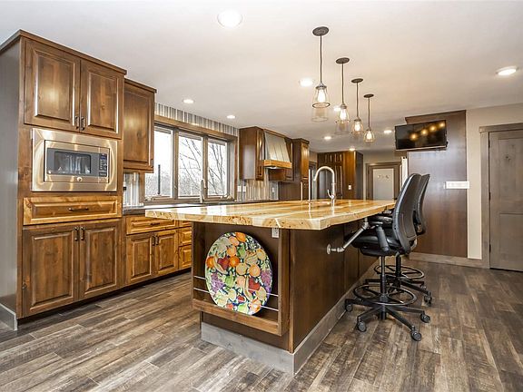 Rare Opportunity To Own An In Town Acreage! This Large Dimension Ranch Offers Five Bedrooms, Four Bathrooms, And An Indoor, Heated Pool. You'Ll Love This Open Concept Layout That Has Been Completely Remodeled With High-End Updates Throughout. The Living Room Area Showcases A Stone Fireplace And Custom-Built Cabinets. The Stunning Kitchen Offers A Massive Butcher Block Countertop Island And Breakfast Bar Along With Beautiful Cement Countertops, Glass Tile Backsplash, And High-End Stainless Steel Appliances. The Main Floor Also Features An Unparalleled Master Suite With A Custom Built Closet And Phenomenal En-Suite. The Spa-Like Master Bathroom Offers Dual Vanities, A Walk-In Tiled Shower, And Heated Floors. The Sprawling Main Floor Continues With An Additional Bedroom, Full Bathroom With A Custom Tiled Shower, And A Spacious Laundry Room With Tons Of Cabinetry And A Drop Zone Area. The Heated Indoor Pool Is A Perfect Area For Entertaining And Will Make You Feel Like You'Re On Vacation Right In Your Own Home. The Lower Level Boasts A Sprawling Family Room And Home Theater Room. Finishing Off The Lower Level Are Two Additional Spacious Bedrooms, A Full Bathroom, And Plenty Of Space For Storage. The Exterior Features Three Large Climate-Controlled Buildings, A Fenced-In Yard, And An Attached Two Stall Garage. This Truly One Of A Kind Offering Is Not To Be Missed. See It Today!