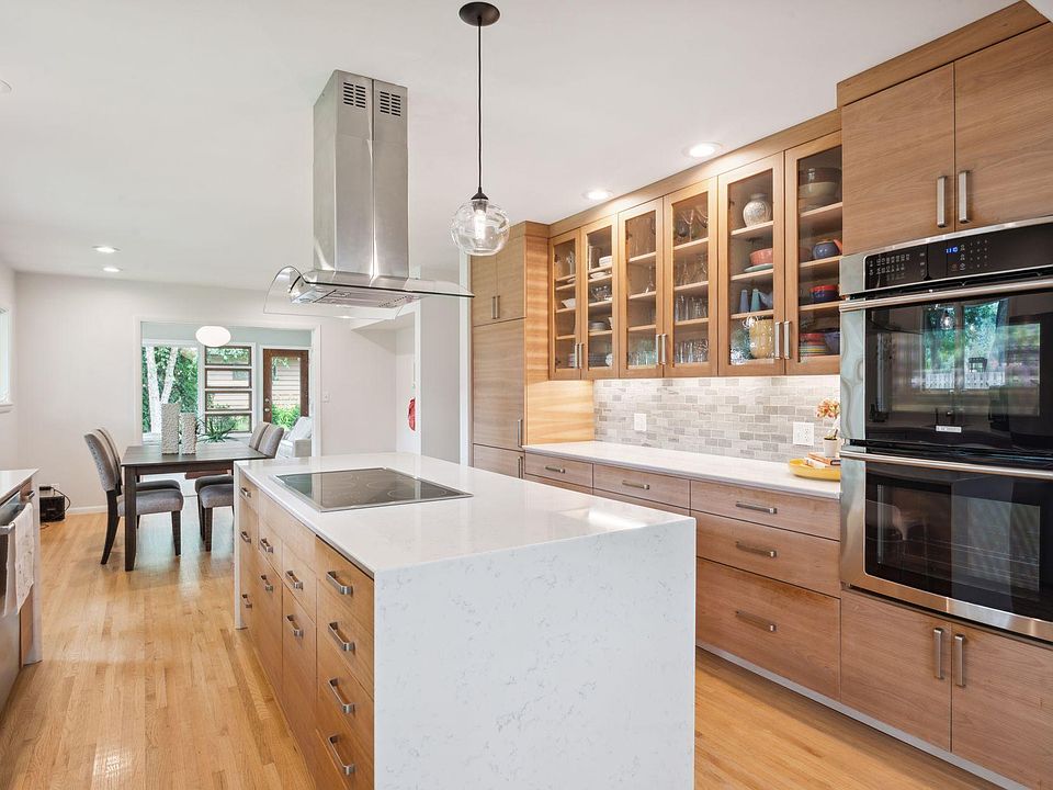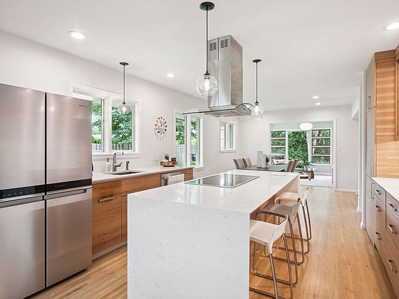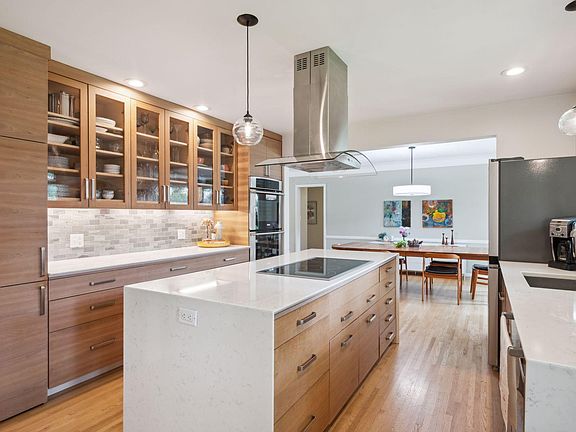 This thoughtfully updated mid-century modern home is located in highly sought-after Golden Valley, This home seamlessly blends modern updates with classic mid-century design, making it an ideal place for contemporary living. The spacious, open floor plan on the main level is perfect for entertaining guests, featuring oak floors, spacious living room and dining room, gas burning fireplace, and custom cabinetry. The bright and airy sun room adds to the charm and functionality of the space. The lower level includes two bedrooms, a large family room, a cozy wood burning fireplace, and ample storage space. Some of the updates include new cabinetry throughout, fully renovated bathrooms, a new roof, quartz countertops, and a stunning waterfall quartz island. The prime location is only 10 mins to downtown, 10 minutes to the Ridgedale shopping area, and just 3 minutes to West End, and walking distance to Meadowbrook Elementary! Take a look and make an offer today!