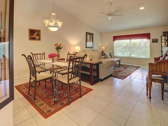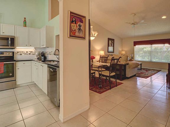 Beautiful villa in a nice, 55+ community, close to many restaurants, shops, parks. Short distance to Florida Turnpike and I95.This 2/2 villa has vaulted ceiling, covered patio, open porch; upgraded granite counter top in the kitchen and new stainless still appliances; new laminated floor in both bedrooms and in the master walk in closet; Hurricane shutters are on all windows;