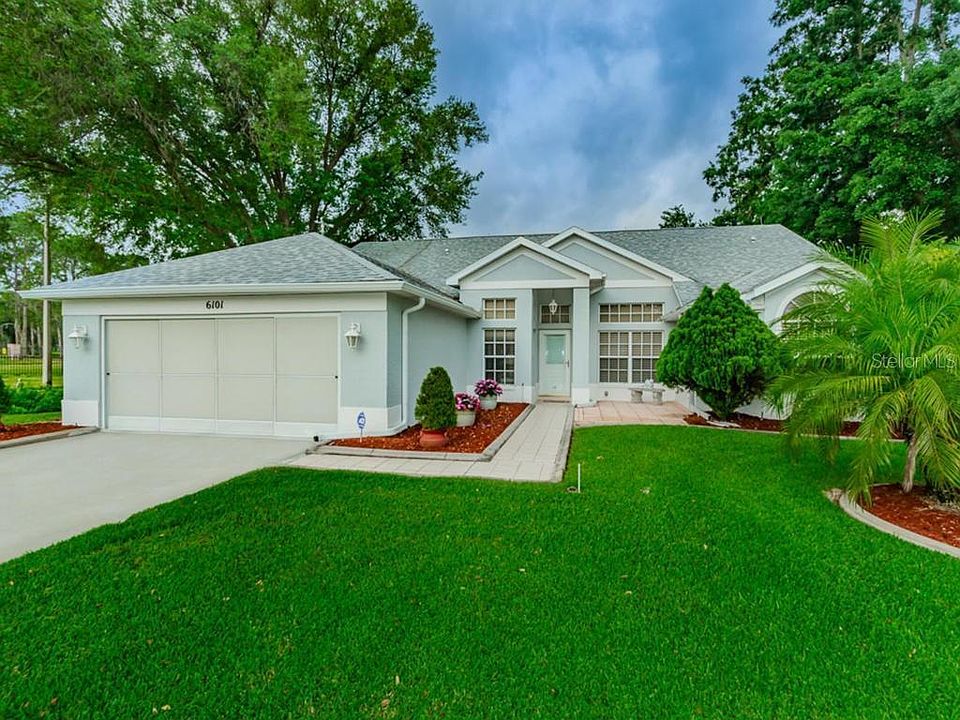 LOCATION, LOCATION, LOCATION... BEAUTIFULLY APPOINTED TIMBER GREENS HOME sitting on an OVERSIZED, PRIVATE CONSERVATION LOT with views of the GOLF COURSE & a NATURAL PRESERVE. Don't miss this pristine 3 bedroom, 2 bath home with 1954 SF of living space centrally located in the highly sought after 55+ community of TIMBER GREENS! The lush, well-maintained landscaping invites you in. The open, airy floor plan flows nicely throughout the home and is filled with lots of natural light. The gourmet kitchen features new high end stainless steel appliances, tile countertops, closet pantry, ceramic tile floors, breakfast bar, with views of the golf course from the kitchen nook. The great room has soaring ceilings and opens up to the dining area. The master suite is very spacious and is highlighted with volume ceilings, large walk in closet with organizers. The master bath has a jetted tub, separate walk in shower, dual vanity sinks & a french door to the screened in lanai. The third bedroom has private access to the lanai as well as a large walk in closet with organizers. Additional features include newer roof (30 year shingle), HVAC & Hot Water Heater (2015), new exterior paint (2018), interior french doors, inside laundry room with laundry tub & extra storage including the water & dryer, 2 car attached garage with private screen on exterior, new irrigation system, Ring security system & gutters! Guard gated community, community pool, tennis, golf course community & more.