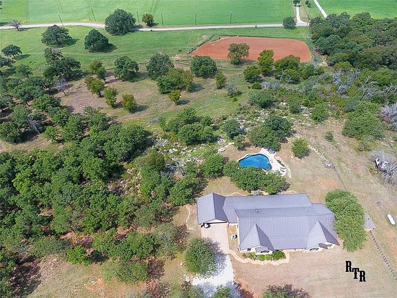 This beautiful 3 bed-2-2.5 bath home built in 2011 has multiple facets to offer that you don't want to miss out on! This ranch home is located on 22.015 acres with 2900 square feet to offer you the perfect welcome home. . This remote ranch comes equipped with a barn, shop, batting cage, mobile home for guest quarters, a tank and spacious arena and to top off your luxuries, a full size pool. Inside it only gets better with a Viking setup in the kitchen with a double oven, gas fireplace, storage attic, game room and office. The home also has a 2 car carport and right at 800 square feet of porch for your leisurely activities! The land is fully stocked with stunning oak trees you'll admire for days to come!