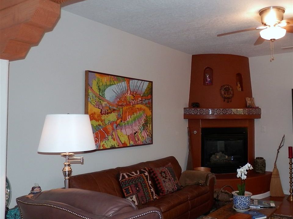 Beautifully updated home ready for you to move into! Open floor plan. No carpet! Laminate wood and tile floors. Kiva gas fireplace with nichos. Two bedrooms plus office/third bedroom and two car garage. Granite countertops in kitchen. Remodeled bathroom with new walk-in shower and vanity in main bathroom. Master has soaking tub with shower. Walk out french doors from dining area to deck and landscaped yards with mature trees. New fence and raised vegetable garden. Corner lot!