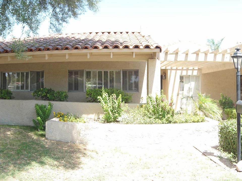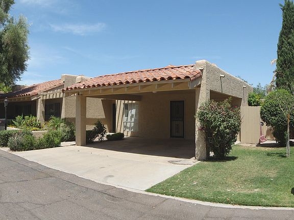 Land Lease is $566 per month. Do not miss your opportunity to own a home in the highly sought after city of Scottsdale, Arizona. Privately Secured in a gated community, this Spacious Scottsdale Condominium is equipped with an elegant 2 way fireplace separating the Two living areas. Vaulted ceilings in the Main living room and formal dining room add to this homes charm. As you tour further into the home you will find 2 Large Guest bedrooms and a Large Full bath off the hallway. Not to forget the enormous Master bedroom equipped with separate exit into the back yard,Private bathroom with double sinks, and Enormous Walk in Closet! The Back yard boasts 2 covered patios, Intimate grass section, and charismatic heated pool. Schedule your Showing today!!