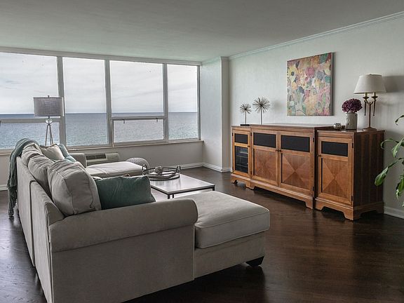 Condo living in Edgewater does not get any better than this! The backdrop of the main living space is a gradient of blue as the sky blends with the lake, visible from the expansive windows and enclosed balcony. East & West exposure combined with a split bedroom floor plan creates a refreshing cross-breeze. Kitchen w/eat-in area has black granite countertops. Master bedroom has a walk-in closet & marble en suite bath. Full hall bath has jacuzzi tub and newer vanity. Newly refinished hardwood floors in LR, DR & halls. Upcoming lobby renovation w/NO special assessment! Walk to everything location including Whole Foods, Red Line, #147 express bus to the Loop, Chicago Public Library, Loyola University, dog park & lakefront trail. Rooftop pool, workout, party room & 24 hour doorperson. Valet parking is $100/month and is included in the listed monthly assessment fee. All pets welcome.