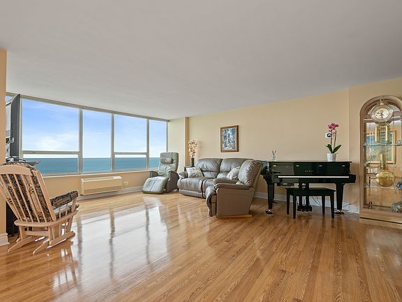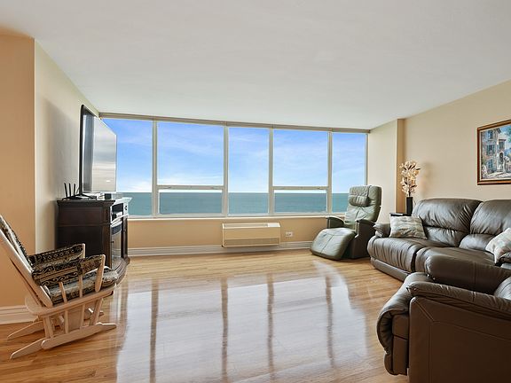 Staying home never felt more like being on vacation East Point is the crown jewel of north side beachfront buildings. 44-story curved structure has unobstructed views of lake and sky. Unique building with only 4 units per floor. Amenities include: rooftop pool, 24-hour door person, ample parking, laundry, storage locker. Pet-friendly. One of a kind building and setting, built 100 feet into Lake Michigain. 22D features east sunrise over the lake & west sunset views. Split 2-bedroom floor plan with large closets, new honeycomb room-darkening shades, 2 full baths (glass multi-jet Grohe shower), galley kitchen with porcelain floors, Maytag double oven & side-by-side fridge/freezer, Whirlpool microwave, large pantry with extra fridge and Tempera tankless hot water system. Large living room and formal dining room/dinette with stunning laminate floors. Enclosed all-season balcony. Legal address 6101 N SHERIDAN RD EAST. No rentals allowed. 100% Owner occupied. Heated roof top pool open 24-7, Exercise Room & sauna, 24 HR Door person, heated garage 125.00 a month valet parking with a weekly car wash. Ample parking for guest. Secured bike room located in the garage. Short walk south to Hollywood Beach and the start of the 19 mile of the magnificent Chicago lakefront bike and walking trail. 2 blocks north and 2 blocks south two children playgrounds. 3 blocks away from Loyola University with it's beautiful green campus. Waking distance to Whole Foods, Aldi, Walgreens, CVS, Physician Immediate Care. Library and many restaurants. "Steps from CTA Red Line & 147 express" Building is not FHA approved.2020 Monthly assessment 614.52 $ 2020 Monthly capital reserve fundMONTHLY 315.81.
