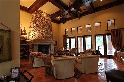 This ultra custom estate located just off VanNess in the exclusive North Field Gated Community offers a blend of Old World & European inspired design. Entering through the custom iron & glass doors, you will be drawn to the grand rock fireplace. The attention to design with a brick ceiling, custom wood windows, and a tile entry rug created by designer Rhomie Thompson, will provide for a warm and welcoming atmosphere. Iron and glass doors lead guests to the grand kitchen equipped with granite & glass sinks, custom Alder cabinets, professional appliances. A combination of tile, marble, travertine, granite & saitilo tile provide the back drop to an unparalleled master bathroom. A Tropical paradise awaits you just beyond the wood french doors -Pool, spa, fire ring, and loggia with fireplace, TV & BBQ provide a stunning setting. Wineroom, bar, lighting & sound system, central vac and alarm in this phenomenal 4 bedroom 3.5 bath estate.A solar system has been included- as a great money saving feature.