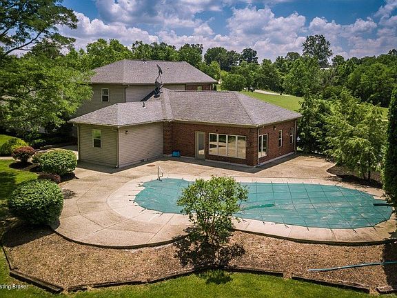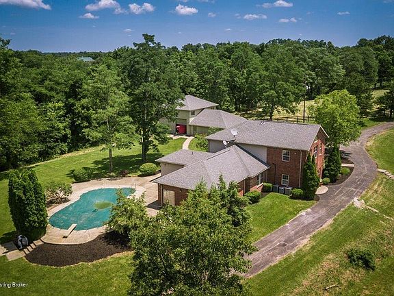 This impressive gentleman's farm in Oldham County on just over 8 acres with 2 large ponds awaits you. This 4 bedroom, 3.5 bath home offers something for everyone. The 4 car detached garage/barn combo has 3 horse stalls, hayloft, and direct access to a fully fenced field. The extra high 4th garage door allows for entry from either side, great for tractor or boat storage. There is also a large patio area with inground pool that overlooks the back of the property, but is still just steps away from the house and pool bath entrance. Inside this over 4700 SF home you will find ample space to roam, with an open kitchen at the center of it all. A large owner's suite with an enormous custom closet and additional bedroom and full bath are on this level, along with a large laundry/pantry area with outside access. The upstairs of the home boasts a great room with cathedral ceilings and ample windows that overlook the ponds and the rolling acreage. This large space offers numerous living options and this floor also has 2 other bedrooms, an office, and another full bath. Farm life awaits, call today!