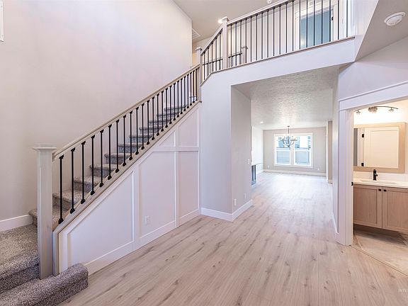 The Monterey by Eaglewood Homes is a luxurious 2,800 square foot home with lots of exciting features. The grand entrance is accented by a wrap-around staircase built with full open hand rail. The master suite's vaulted ceilings and elegant master bathroom are just the kind of retreat you deserve. The vaulted bonus room is the perfect place for a media center, game room, or room for guests and family. This efficient design fits four bedrooms, a bonus room, a den that can be used as a 5th bedroom, and three full bathrooms. You'll have to see this home in person to experience the rest it has to offer! Every Eaglewood home comes with premium Moen plumbing fixtures, custom cabinetry, and Bosch Appliances. Lavender Heights is an exquisite new community in Meridian across from Discovery Park. BTVAI. ALL PHOTOS ARE ACTUAL. Bring your real estate agent for access to tour the home via lock box. Construction is complete!