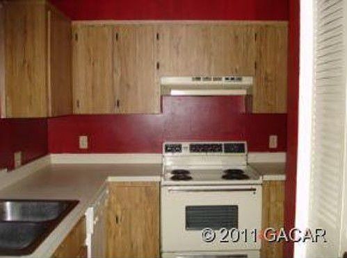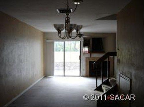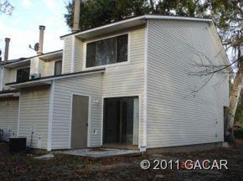 Bank Owned End Unit Townhome Terrific price on this end unit townhome in Shellrock Villas. Combination living-dining room with fireplace, fully applianced kitchen with breakfast bar and planter box window, sliding glass doors to rear open patio that overlooks the wooded natural area perfect for relaxing. Master bedroom with dual walk-in closets and secondary bedroom are both upstairs. Just ten minutes west of campus with easy access to the bus line and less than two miles to the Oaks Mall. Perfect for your fulltime residence, use while you are attending UF, or even as an addition to your investment property portfolio. Come take a look and advantage of one of the best priced units in this area.