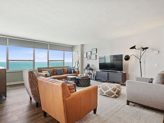 'SMART', ULTRA CHIC LIVING ON THE LAKEFRONT The large open-plan living-dining-kitchen area is stunning enough-but when you triple-open one whole wall to your private balcony over Lake Michigan you'll be swept away by the view-and the breeze, the sun, the moon, and the stars! This breathtaking home has been completely renovated to incorporate the latest "SMART HOME" technology and functionality with the practiced eye of a genius contemporary interior designer. No relying on fickle wireless service because this dream home is wired with twisted-pair Ethernet. Apps like Alexa put the blinds, lights, and other amenities at your verbal command. Incorporating a private office with a Lake view, the KITCHEN is open to the living area making it perfect for friendly gatherings. An exquisite white quartz-topped island provides the focal point for seated conversations with a glass of wine in hand. (A beverage refrigerator unit hides under the far end of the counter, a drawer-installed microwave opens to the kitchen.) The Samsung refrigerator boasts a separate refrigeration drawer along with the main refrigerator and freezer spaces. Those who take cooking seriously will appreciate the Samsung electric induction stove. And you'll be intrigued by the hidden elevator stand for your Kitchen Aid mixer! Finally, a Bosch dishwasher is there to clean everything up with ease. The split 2-BEDROOM plan assures privacy and both bedrooms face west for glorious sunset views. Both have generous closet space with one incorporating a stacked LG washer/dryer unit. The master BATH features a toilet with bidet features, a glass-walled walk-in shower. The second bath exudes indulgence with a deep flat-bottomed tub perfect for a super-relaxed soak and an intriguing contemporary sink. EAST POINT, a curved architectural gem of a building, is 100% owner occupied with just 4 units per floor, pool, gym, party room, heated garage and 24-hour door staff. Pets welcome (no breed, size, or quantity restrictions). Walk to Whole Foods, Walgreens, CVS, restaurants, the beach and bike trail. Downtown is just about 25 minutes away via the Red Line train and 147 express bus. 2021 monthly assessments for this unit are $624.63 and the monthly capital reserve fund is $321.00. A small assessment of $395.78 a month until December 2021 will be paid by seller. Because garage & driveway are temporarily under reconstruction no parking on site at present Park on street and walk over.. (Regular parking fee of $125 per month includes weekly car wash.) DO NOT TRY PARKING AROUND THE BUILDING FOR A SHOWING DURING CONSTRUCTION PARK ON THE SURROUNDING STREETS AND WALK OVER. \