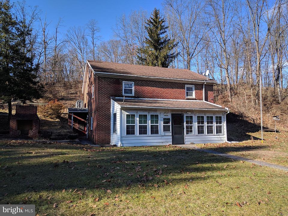2 story brick home sits on 2.1 private acre lot. The home features 3 bedroom with 1 full bath upstairs and a toilet and shower in the unfinished area on the first level. Large eat-in kitchen with electric stove, refrigerator, plenty of counter space and ceiling fan over eat in area. 2nd level has a large landing area with door to the rear yard and linen closet. There are 3 bedrooms and a full bath. The 2nd bedroom has walk up access to the large attic providing plenty of storage area. There is a detached 3 car garage and barn. Property is being sold "as-is". One year home warranty provided.