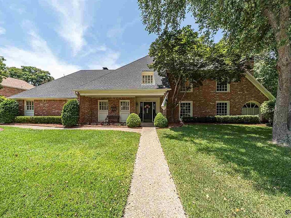 Prime Location! Wonderful family home nestled in one of Tyler's most prestigious neighborhoods! This gorgeous home checks all of the boxes. Featuring 5 bedrooms, 4 full baths, office off the master suite, 2 bedrooms down and 3 bedrooms upstairs. Huge living room with gas fireplace, open kitchen and grand hearth room with wood beams. Master bathroom with soaking tub and shower, his and her vanities. Guest bedroom with its own bath and with backyard access. Perfect pool bath. Great entertaining backyard with covered and open patio, speakers, in ground pool (with perimeter fence) and grass play area. Gated driveway. Centrally located near schools, restaurants, medical, etc. Welcome Home!!