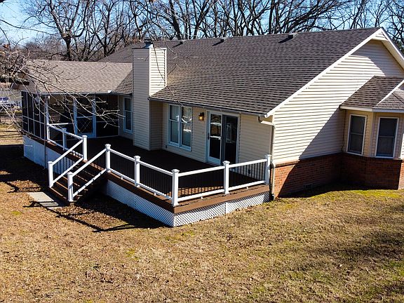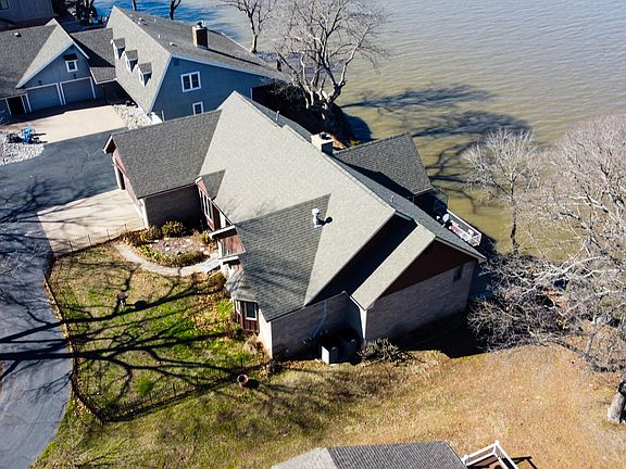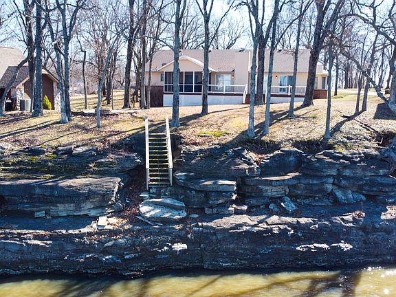 GRAND VIEW ESTATES *SPECTACULAR VIEWS FOR THE 4TH OF JULY! Open concept, approx. 2600 sq ft, 3bdrm/3bths. The home comes fully furnished. Spotless, Lake front w/approx 60' water depth, 10-slip com. dock, private boat ramp, trailer parking. 12x26 boat slip incl. Wide rock ledges on lakefront perfect for tanning, swimming & family fun! Private Community but not gated. 2017 Roof. 2015 HVAC & Sewer. Remodeled Kitchen, MBath w/heated floors, oval tub & shower, wood floors, lighting & more. Plus, bath w/shower off Laundry Room. Master access to lakefront screened-in deck. Kitchen w/island, lg bar, eat-in area, formal dining & views. Wood burning fireplace. 2 car garage plus shop area - epoxy floors. Stairs lead down to a 468sqft man cave. Very quiet neighborhood. AMAZING VIEWS! A MUST