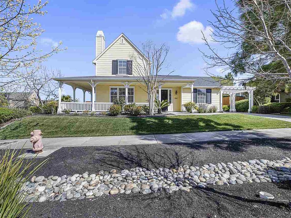 Gorgeous 5+ bedroom home in secluded, quiet neighborhood in beautiful Livermore wine country. This spacious home on an elevated corner lot has a large wraparound porch and provides for stunning views of the surrounding hills. The elevated lot also ensures your privacy while enjoying your quiet and beautifully landscaped backyard. This home also boasts a courtyard patio sheltered from sun and wind, thus perfect for outdoor dining. On the inside, you'll find a large bonus room/6th bedroom/office with gorgeous custom barn doors; a roomy kitchen with granite counters, center island & new built-in refrigerator; a master bedroom with large retreat and premium window coverings throughout the home. It's also just minutes away from wineries, parks, hiking trails and Livermore's award-winning downtown.
