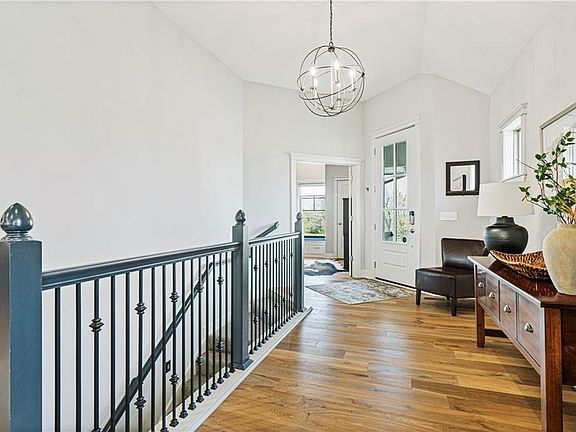 Convenient main level living, the primary suite is brightly lit with great natural light and includes a large walk-in closet, double vanity, walk-in shower and soaker tub. The laundry room is conveniently attached to the walk-in closet. The attention to detail extends to the upgraded fireplace insert with stonework, creating a cozy and inviting atmosphere in the living room. Additional upgrades to many of the light fixtures as well as kitchen appliances. The main floor also includes a 2nd bedroom and full bathroom. The walk-out lower level features a spacious entertaining area, 2 additional bedrooms with Jack-and-Jill bathroom, large wet bar and storage room.