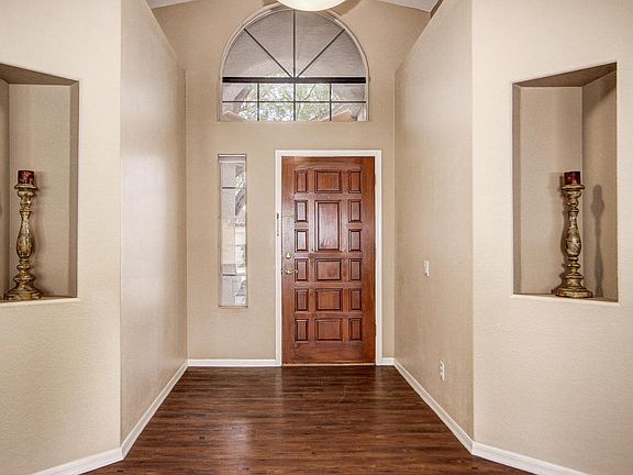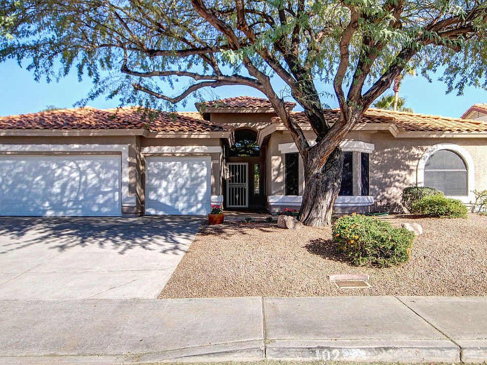 Beautiful newly renovated home in the fantastic master planned golf course community of Red Mountain Ranch. It offers vaulted ceilings, designer paint, gorgeous wood plank vinyl flooring & a tiled fireplace in the family room. Eat in kitchen boasts honey oak cabinets, designer tile backsplash, center island, brand new granite counters & updated lighting. Master suite has private exit, walk in closet and luxurious spa like bath w/ garden tub & separate shower.Three bedrooms have brand new plush carpeting and ceiling fans. Bedroom 1 has built in bookcases & desk! Entertain family and friends in the backyard oasis complete w/extended covered patio, refreshing blue pebble-tec pool and easy care landscape! Add the 3-car garage and great location and this home will make your dreams come true.