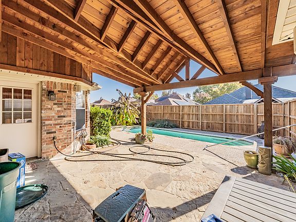 Welcome to this beautifully maintained Rowlett home featuring an exceptional layout, quality craftsmanship, and stunning curb appeal — all with NO HOA! Step inside to find tall ceilings and an inviting open floor plan. The cozy living room centers around a large wood-burning fireplace, creating the perfect atmosphere for relaxing or entertaining. The spacious primary suite includes a well-appointed bathroom, while the expansive kitchen offers granite countertops, a large island, and a charming breakfast nook overlooking the backyard. Each bedroom is generously sized and includes its own walk-in closet, providing ample storage throughout the home. Step outside to your own private oasis: a gorgeous covered patio with impressive carpentry details and plenty of room for outdoor living. Whether you're hosting gatherings, watching the game, or grilling out, this space has it all. The sparkling pool completes the backyard retreat, offering the perfect spot to unwind. This home has so much to offer its next owner and is truly a wonderful place to call your own. Don’t miss your chance—come see it today!