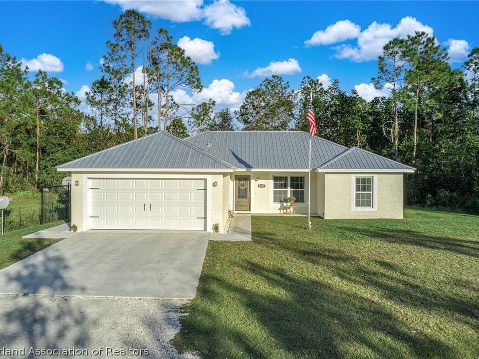 Attention Price Drop: Nearly Brand New home, with split floor plan. Home is located on a county maintained road. Metal Roof and open front porch. Very peaceful area with the rural feel but you do not feel isolated. Fully enclosed back yard, new 6' tall chain link fence. Home has water filtration system. Mail box is at the end of the road includes security lock. As you walk through the front door you notice the vaulted ceiling with wide open living, dining & kitchen. Notice the tall base trim, and molding at doors. French doors at the rear patio with built in blinds. All luxury vinyl plank flooring thru-out the home. Tilt wash double hung, double pane windows. You will see in all the closets solid shelving. Home includes blinds but, does not include curtains where located. There will be the industrial style shelf left in the the living room. Large Master Bedroom with walk in closet and private bathroom. Modern tiled shower with glass door, granite top with sink. On the other end of the home you will see a 2 bedroom suite and bathroom. Also has modern tile and granite top with sink and cabinet. Solid wood cabinets with dovetail drawers in kitchen and baths. Washer and dryer does not convey with home. Owners decided that they want to be a bit closer to their family up north. Homeowners will provide their survey and their mitigation report.