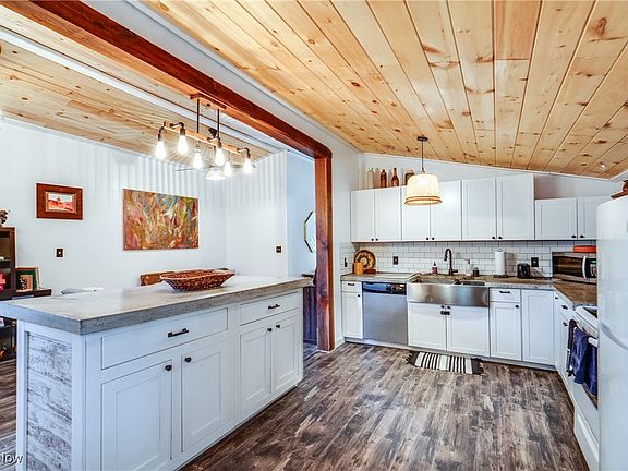 Discover your peaceful retreat in this beautifully maintained 2-bedroom, 1-bathroom ranch home. Nestled on .97 acres, this property offers a serene, picturesque setting that is ready for move-in! Step inside to find the spacious living room with vinyl flooring. The kitchen features concrete countertops, stainless steel appliances, and a large island. One of the bedrooms boasts a slider to the deck and a generous closet space. The second bedroom features a unique wood accent wall. The sunroom is heated and features skylights and a wood burner. Enjoy the fresh air on the large front deck or gather around the fire pit on the backyard patio. Additional features include a detached 2.5-car garage, a chicken coop, and a backyard where trees surround you. Plus, you aren't too far from Portage Lakes! Don't miss your chance to see this wonderful home; schedule your showing today!