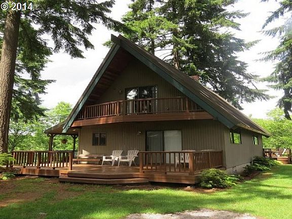 Serene Treed Country Setting on the Lewis River with 196' of River Bank Fishing. Custom Chalet with Floor to Ceiling Windows,Soaring "Hidden" Brick Fireplace, 40' Vaulted Ceiling. Concrete Counters in Kitchen & Bath, Stainless Steel Appl., Hardwood Flooring, Travertine Bathrooms, 2 masters & Loft. Wrap around Deck, Sauna and Workshop off easily enclosed Carport. Interior Speaker Sys, Hi-speed, Central Heating Orig built 1969 remodel '07