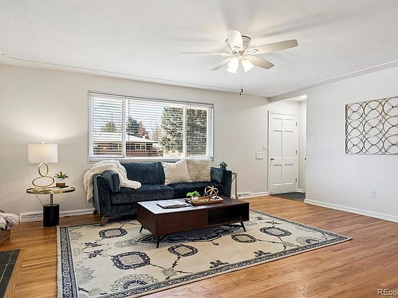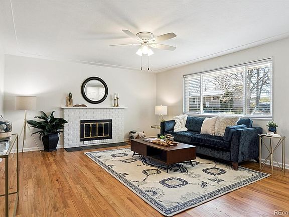 Welcome to this charming brick ranch, ideally located on a large .26 acre corner lot, a short walk from the High Line Canal Trail and Milliken Park. Freshly painted interior and gorgeous newly refinished hardwood flooring throughout. Bright and open Living Room is graced by a cove ceiling with original ceiling texture which adds a vintage touch. The lovely brick fireplace with slate hearth will keep you toasty warm on our chilly winter nights. Spacious Dining Room features a ceiling fan light fixture and a sliding door which opens to the expansive and private concrete patio and back yard. Cooking will be a pleasure in the updated Kitchen. Plenty of counter and cabinet space, handy breakfast bar. All appliances stay, including a Samsung gas cooktop. Primary Bedroom has 2 large windows and a ceiling fan light fixture. Ensuite ¾ bath which is updated with tile shower & flooring and a pedestal sink. 2 additional bedrooms feature vintage ceiling texture and sun-filled windows - nicely accommodated by a full hall bathroom. Extensive additional living space in the full basement which includes a Bonus Room and plenty of square footage just waiting to be finished. Lots of storage space. Newer A/C, newer windows, copper piping, solid 6 panel doors, sprinkler system. Peaceful and welcoming community with easy access to the treasured High Line Canal Trail, a 71-mile walking & biking trail and Milliken Park with its playground, baseball & soccer fields and picnic shelter. Outstanding Littleton Public Schools.