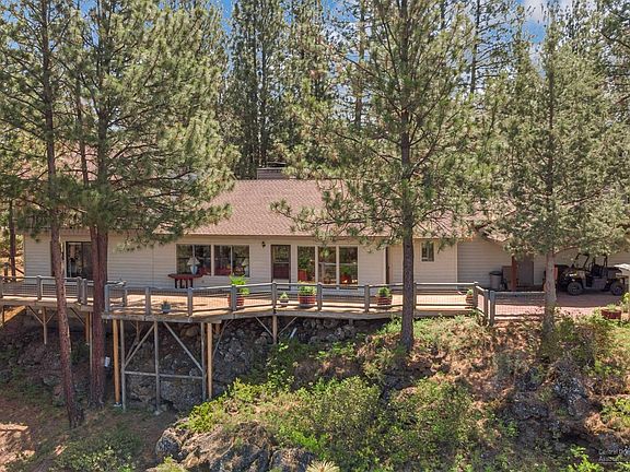 One of a kind property, setting and location w/unobstructed Cascade views from Mt Bachelor to North Sister. This 5.81 acre Westside parcel is nestled among mature pine trees & boarders Forest Service land, yet just minutes from Downtown Bend, Old Mill, Tetherow, Mt Bachelor and a short distance to the river trail. This one owner, custom home was built to bring the serene outdoor setting in with large picture windows, vaulted ceilings, skylights and exposed beams. Enjoy stunning sunsets and panoramic views from almost every room in this home. The expansive deck extends the length of the entire home and offers easy access from nearly every room. Cozy up in the living room to the wood-burning fireplace. Plenty of room for all of your toys and hobbies with a oversized 2-car attached garage and a detached 28x60 covered shed & shop. This is a very rare property with no HOA! Come create your own Westside Estate.