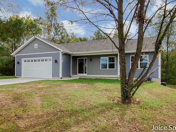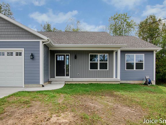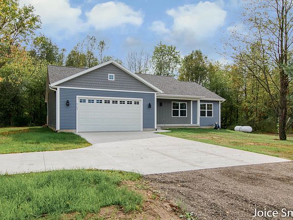 Custom Ranch Home on 2 Acres For Sale! Just 1 mile East from Belding city limits NOW COMPLETE! • Custom Ranch (NOT a track home) • Lot Size: 2 acres • Living Space: 1569 sq ft finished on main level • Construction: 2 by 6 exterior walls for superior insulation and strength • Garage w 8 ft: high door perfect for trucks• Kitchen: Elegant dove white cabinets with sleek quartz countertops • Main floor laundry • No Association: Enjoy the freedom of no HOA fees or restrictions • Privacy: Secluded setting with wooded area on 3 sides . Don't miss out on this rare opportunity to own a unique, custom-built home with all the space and More... Lower Level: Spacious area with room for 1-2 bedrooms, family room and plumbing ready for a 3rd full bath