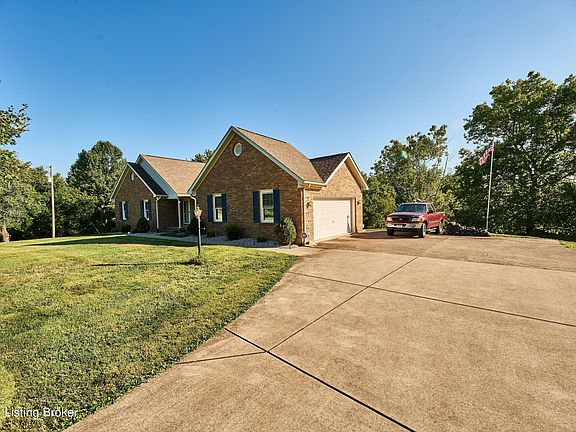 First time on the market! One-owner, custom-built Ranch home with walkout basement on 6.43 acres! Three Bedroom and 3 Bath home with screened-in porch overlooking the beautiful, private views of the large pond and acreage. There is a deck off the screened-in porch and there is also access to the deck from the large Primary Bedroom. The property features a 30 ft x 40 ft barn with electric service and plenty of room for riding mower/tractor, plus room for all your equipment and space for a workshop. Three-year-old Cub Cadet zero turn mower & Ferguson TO20 tractor with finish mower and bush hog available for purchase, $3,000 each or may remain with property with acceptable offer. There is a 2-car attached garage as well. Full unfinished walkout basement with a Full Bath offers many possibilities. Steepleton pool table and upright freezer in basement remain, as well as washer/dryer on the main level. Maintenance-free windows 3 years old. Roof & hot water heater 5 years old. The home features a security system, recessed lighting, a whole-house fan, Levelor blinds & custom shades in Dining Room, low monthly electric ($91/mo) and water ($15/mo). Horse farm/riding lessons 3 miles away. Locust Grove Elementary & East Oldham Middle Schools 2 miles away. This is your opportunity to own a slice of heaven. Schedule your showing today!