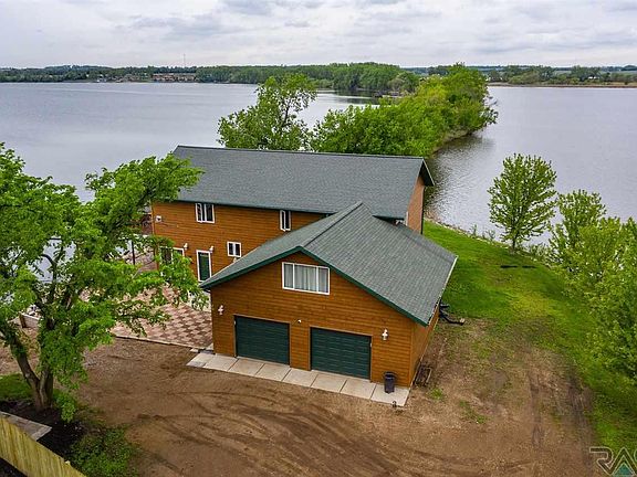 AMAZING A-frame cabin offers a secluded sanctuary, as it has a grand sea of panoramic water views with 150' of private lakefront shoreline and yet an additional 80' of shoreline along Bourne's Slough behind the 2-story, walk-out home that has 5 bedrooms, 3 bathrooms, a 2 stall oversized garage for all your toys, plus a MAN CAVE! Easily launch your boat in and out right at your own personal beach. Investment opportunity knocks here as well, as a potential rental property for AirBnB & VRBO, with the private setting and ability to sleep 20+ people. Spring and Summer here offer fun in the sun with boating, fishing, swimming, golfing or enjoying the local atmosphere at the Sandbar, Hillside or Broadwater with great food, drinks and even live entertainment. Fall brings some of the best pheasant and deer hunting in the midwest. Go ice fishing, ice skating or snowmobiling in the Winter. This cabin is within minutes of amenities in the town of Madison. Welcome home to the lake life here!