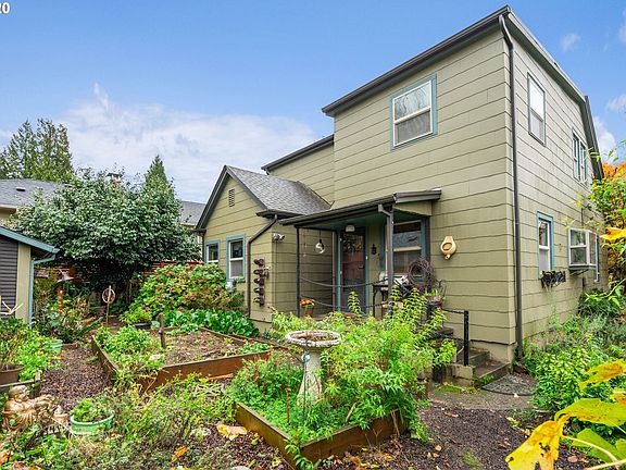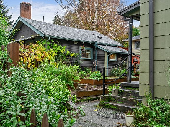 Soulful,warm home located in North Tabor on lrg corner lot & within a minute to 84 & max.Just a short walk to shops,dining & coffee shops.Detached garage has been converted to permitted ADU/Studio complete w/ W&D,tile shower,driveway parking,etc (rent@approx $900mo).Main home has own parking space as well & plenty of street parking also. Ask your agent for personal notes/amenities attached to listing. Herbalist/Gardners haven. Basement pictures not shown but is quite spacious. Easy to show.