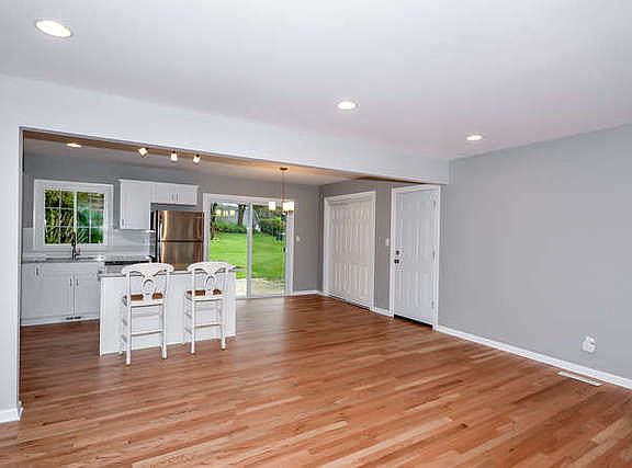 Meticulously renovated house in Killarney Acres! Floor to ceiling renovation. Open concept first floor. White gourmet kitchen with granite counter-tops, stainless steel sink and appliances, seating at island and eat-in kitchen. Located on a beautiful cornet lot with large 0.5 acre yard. Patio off eat-in kitchen. Nearly everything is brand new! Roof, furnace, windows and doors, driveway, water heater, water softener, garage door, hardwood floors, carpet and appliances! Updated electrical throughout. New ceiling fans and can lighting. Close to town and train. Lake rights, beach, boating and fishing! Great schools! Do not miss this rare opportunity!