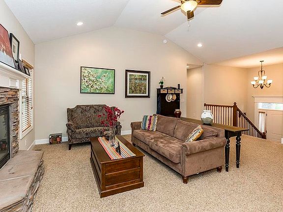 Great bi-level home near Langston Hughes Elementary & Rock Chalk Park w/easy access to I-70 & K-10 for commuters! Terrific floor plan invites you into this 4 bedroom, 3 bath, 2 living area home w/vaulted living room ceiling, granite kitchen counters & stainless steel appliances. Master bath features double sinks, jetted tub & oversized shower. 29' deep garage! Large covered deck (14x12) backs to treed area & is ready for year round enjoyment. Fully sodded yard w/sprinkler system.