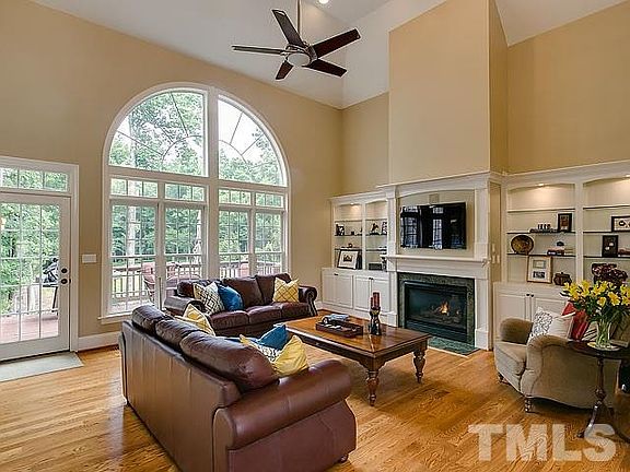 JUST REDUCED for this PRIVATE custom 1.52 acre BASEMENT home in Carlyle! Spacious flowing floorpan, grand foyer and finishes. FF owners suite, hardwoods throughout 1st & 2nd floors, all beds with prvt. baths, screened porch, 3 car garage, loads of storage. Gourmet kitchen, lg. island, pantry and top appliances. Finished basement w/inlaw suite, gym, office, game room . . . all overlooking park-like setting! Fantastic neighborhood w/clubhouse, pool, tennis & convenient to 540, 440 and Raleigh's finest!