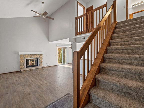 Available immediately. 2-bedroom 1.5 bath condo updated with newer laminate flooring throughout main floor and newer carpet on second floor. Complete with fireplace, large, vaulted living room and dining area off the private patio. The kitchen comes with all appliances including washer and dryer. Upstairs isa large main bedroom with walk-in closet and full bath. There is a second bedroom off the main. Tenant pays all utilities. First month's rent and deposit of $1400each due when lease is signed. Association has a pool and club house available to tenant, tennis courts, clubhouse and playground all across from this home. Credit and background check required. No smoking, no pets, minimum one year lease. Tenant is responsible for gas, electric, water, trash bills