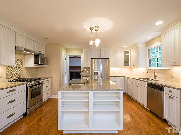 This Raleigh two-story home offers kitchen granite countertops, a kitchen island, and a two-car garage.