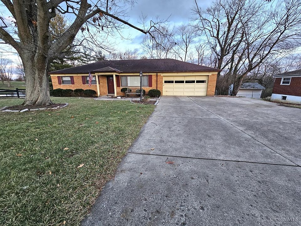 Brick ranch with approx 2200 sq ft of living space and attached 2 car garage on a half acre+ in the heart of White Oak! Spacious finished walkout lower level with massive wooden bar is a great place to have parties! Lots of offstreet parking on the level driveway! Remodeled eat-in kitchen with quartz counters, stainless appliances and walkout to covered patio overlooking the park-like, completely fenced backyard! Hardwood floors and coved ceilings! Easy access to I-74, Ronald Reagan Hwy, and 1-275!