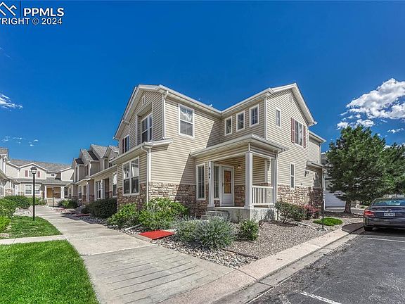 Welcome to your dream townhome, where modern style meets ultimate comfort! Low HOA dues. This stunning 2-story end unit has it all: fresh paint, new luxury vinyl plank flooring, and plush upgraded carpet that invites you to kick off your shoes and stay awhile. Who doesn't love fresh flooring without OPF? (Other People's Feet). Step inside and you'll be greeted by a bright and airy living space that's perfect for entertaining or cozy nights in. The main floor has an open-concept living room, a chic dining area, a well-equipped kitchen, and a handy laundry nook. There's also a convenient half bath and easy access to your attached two-car garage, complete with a workbench and cabinets for all your storage needs. Head upstairs via the double landing staircase, and you'll discover even more space to make your own. In addition to the spacious primary suite—which features a vaulted ceiling, a luxurious en-suite bathroom with a dual vanity, and a large walk-in closet—you'll find a generously sized second bedroom with double closets and its own private bathroom. But here is a bonus: A large 18 x 15 loft offers endless possibilities. Whether you envision a stylish home office, a cozy playroom, a quiet library, a second living space, or even a personal gym, this versatile area is ready to adapt to your lifestyle. Outside, enjoy the privacy of your covered front porch and the convenience of an HOA that takes care of all the outdoor maintenance AND the HOA dues are low in comparison to many townhouse communities. Spend your weekends exploring the park-like setting and winding pathways right outside your door. *HOA Documents uploaded in the MLS. Located just minutes from the Powers Corridor's latest shopping and dining hotspots, and close to schools, a fire station, and a modern hospital, this home offers the perfect blend of convenience and tranquility. Don’t miss your chance to fall in love with this beautiful, move-in-ready townhome!