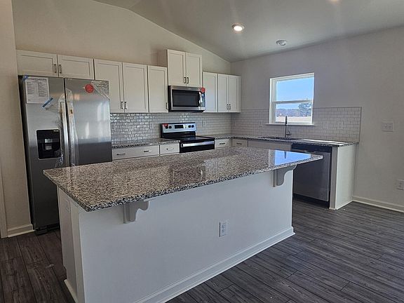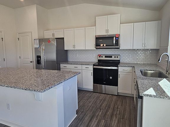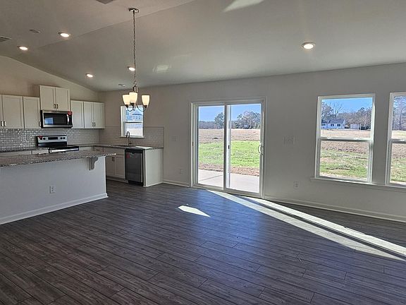 Welcome to this cozy brand new ranch-style home, sitting on a large homesite in a lovely southern Wake neighborhood, complete with fiber cement siding and Energy Star certification! This inviting house features great touches like granite countertop, volume ceiling and island in the kitchen. The energy-efficient kitchen comes with stainless steel appliances, offering a great space for cooking and spending time with family and friends. Featuring upgraded Luxury Vinyl Plank floors throughout the living areas, this home provides durability and style, while the bedrooms are finished with cozy carpeting for added comfort. The main bedroom is a comfortable retreat, with a spacious private bathroom, tile shower and a large walk-in closet. Enjoy some relaxation on the large patio, where you can feel close to nature, beautiful sunsets and outdoor activities.