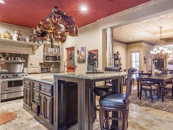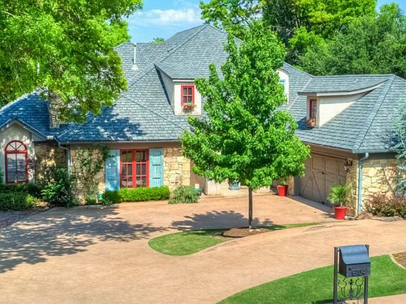 SWIMMING POOL & GUEST HOUSE! FRENCH COUNTRYSIDE INSPIRED - with classic design concepts "Imported" straight from Provence *Guest House with basement *Collectors' wine cellar *Cabana with outdoor fireplace *Outdoor kitchen with Viking Grill & Evo Griddle Golf cart garage *Walking distance to OAK TREE NATIONAL GOLF COURSE - Edmond's premiere PGA level course! Transformed by renowned designer, Toni Freeman- then further remodeled by Tom French in 2013. Abounding in French Country character, the property is filled with reclaimed wood, antique doors, gates & wood beams, corbels from Europe & Pennsylvania, wood/stone/concrete floors, decorative columns & much more! The main house is 4900sf with 4 bedrooms, 4 bathrooms & multiple living areas. The 1800sf guest house is solid concrete construction & has 1 bed, 1 bath, living areas & kitchen - ideal multi-generational home! 440sf cabana with arched openings. Resort-like grounds with winding paths & water feature. SELLER HAS AN APPRAISAL AT 875K