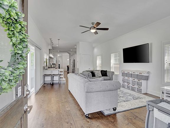 Walk-through video in media section. Easily one of the most impressive yards in the entire Nations neighborhood. A fully fenced-in side yard, smart irrigation, sod, professional plants, hardscape and an above ground pool. Offering a 2,496 sq. ft. home with 3 Bedrooms, 3 Bathrooms, a parking pad for 3 vehicles, covered front porch on both levels with a side balcony upstairs. Hardwood floors, open kitchen with gas stove, SS appliances, quartz countertops, large walk-in pantry and a formal dining room. Primary bedroom upstairs with vaulted ceilings and a private covered porch. Fresh paint throughout.