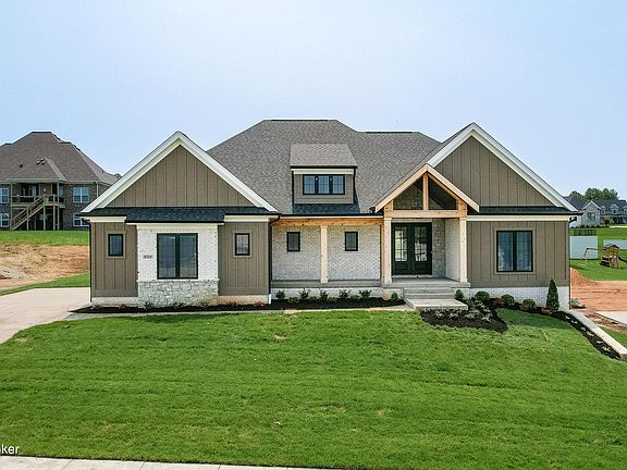 NEW Construction in Oldham County school district! Split bedroom ranch home with 3 car garage on cul-de-sac lot in Crestwood's Brentwood subdivision. Open floor plan features custom Amish built cabinets with quartz counters, GE Cafe appliances, pocket office (not in a bedroom), covered patio, 3 zone HVAC system with dual-fuel (gas & electric heat pump), irrigation system, basement with egress window and plumbed for full bath for future finish. Brentwood offers its residents a private swim, tennis and clubhouse.