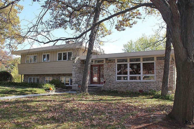 Stunning Frank Lloyd Wright inspired home w/beautiful Lannon stone exterior. California Walnut door, trim & windows throughout. Great southern exposure. Rooftop patio over garage & built-in grill. Large Family & Rec room each w/wood burning fireplaces. Rec room has wet bar-great for entertaining. Large workshop Located on one of the highest points in Monona with mature trees complimenting the homes design. Home is a must see and priced right to sell quickly.