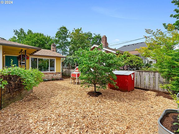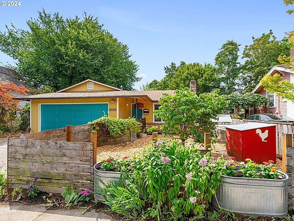 This is a move-in ready, ranch style home with an easy flow from inside out. New roof/gutters in 2012, new windows 2010, and new furnace 2017. The landscaping is low maintenance with the most adorable chicken coop and an outdoor shower! The French doors lead you outside from the kitchen to yet another amazing space to relax and entertain in all seasons. There are two bathrooms in this home and while the primary bath is sleek and modern, the guest bath gives vintage vibes with the coolest wallpaper and lighting. All appliances are yours to keep and the walls have been freshly painted. The neighborhood is very walkable with restaurants and bars galore. Moving in will be quick and easy in this one level home so view it ASAP! [Home Energy Score = 4. HES Report at https://rpt.greenbuildingregistry.com/hes/OR10105214]
