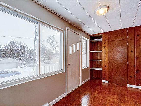 Walk in to your heated/cooled porch (which could make a great office area!) and see the beautifully refinished hardwood floors throughout the porch, family room, and both bedrooms. The main bedroom includes a walk-in closet and a built-in shelf. The BRAND NEW kitchen on the main floor featuring white cabinets and stainless steel appliances was just completed, and includes a great barndoor closure. A tiled bathroom finishes the main level. The partially finished basement includes a kitchenette area, laundry, and a bonus toilet/shower. Outside is a huge backyard and a detached 2 stall garage. Updated electrical panel and outside service was just completed. Fresh paint throughout. All appliances stay.