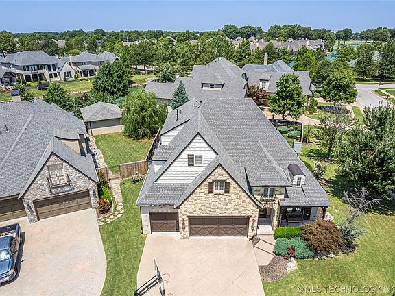 Live in South Tulsa's luxurious, premiere Berwick neighborhood! This home is situated on a quiet cul de sac with gorgeous designer finishes throughout. New interior paint throughout and new HVAC system installed in June 2023. This beautiful home has extensive handscraped hardwood flooring, wood blinds & custom touches throughout. Beautiful entertainer's kitchen and great room space with built in cabinets and stone fireplace. Primary plus second bedroom down with ensuite bath. Executive office and formal dining space plus additional half bath down. Two bedrooms and oversized game room upstairs could act as second office. Tranquil backyard with a large covered patio, pergola and stone fireplace. Stocked neighborhood ponds. Perfect year-round and for summer entertaining! This pristine property won't last long!