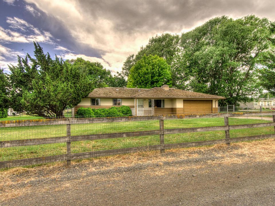 Solid single level home set on a private shy acre in West Valley. An accepted Offer to include a new 30 yr Pabco composition roof installed prior to closing, with a color of buyer's choosing. The home has a newer electric forced air furnace and central air conditioning. Vinyl windows and oak hardwood flooring. Wonderful setting with towering shade trees and large covered patio. 12x12 Storage shed. Survey of the property recently performed. Note stakes. Take the time to view today.