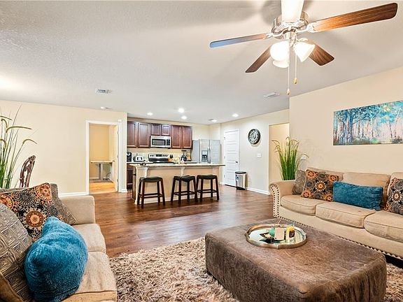 This beautiful 3 bedroom 2 bathroom homes is located in the quite gated community of Longleaf Gates located off of Girby Rd. This home has hardwood floors throughout the living area and carpet in the bedrooms. As you enter the home there are 2 bedrooms to the left and a guest bathroom. The laundry room is located just across the hall. As you continue through the home it opens up to the main living area and Kitchen. This space is open and great for