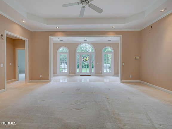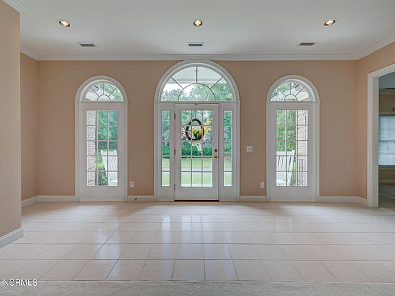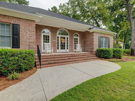 Custom built home in the Middle Sound Loop area of Wilmington NC now available! This stately brick home has excellent curb appeal with mature landscaping & a side loading 2 car garage. The covered front porch welcomes you inside where you'll find tall ceilings & a spacious floor plan. The large living room boasts an elegant tray ceiling & corner gas fireplace. The kitchen features white cabinetry, a built-in microwave, built-in oven, dishwasher, stainless fridge that stays, & a long bar top for gathering around. There's also a pantry tucked around the corner. Host holiday gatherings in the formal dining room or enjoy a more casual meal in the sunny breakfast nook. The eat-in kitchen also has real oak wood flooring. Double doors open up to the primary bedroom suite which has a tray ceiling, walk-in closet, & its own full bathroom w/ a jetted tub, walk in shower, & 2 sinks. With a split bedroom floor plan there are 2 more spare bedrooms on the opposite side of the home with a full bathroom in between them. There's also an additional half bathroom for guests & a dedicated laundry room that is complete with a sink & cabinetry. The washer & dryer stay with the home. Enjoy relaxing or entertaining on the incredible oversized back deck that is partially covered & has a convenient propane hookup for a grill. It overlooks the sprawling backyard which extends past the tree line. The roof was replaced in July of 2020. Irrigation is in front & backyards. Termite bond in place.